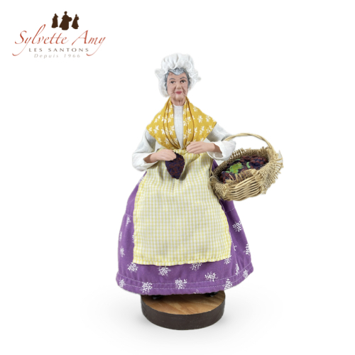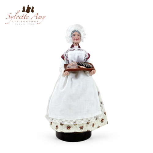 Le Santon Boulangère 25 cm, est réalisé en argile rouge et son visage est peint à la main avec de la peinture acrylique.