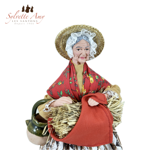 Santon Femme Foin-Cruche 25cm de la collections « Santons Habillés 25 cm »,e n argile peint et habillé à la main.